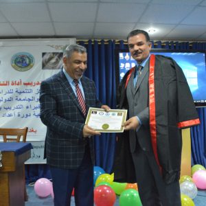 اقام مركز التنمية للدراسات والتدريب والأكاديمية الدولية الكندية والجامعة الدولية للدراسات البرلمانية والبرلمان العربي لخبراء التدريب بالتعاون مع وزارة العمل والشؤون الاجتماعية احتفال رسمي بتخرج نخبة من اساتذة الجامعات ووزارة التربية وموظفي الوزارات الاخرى دورة أعداد المدربين ( TOT ) بمعايير دولية معتمدة .